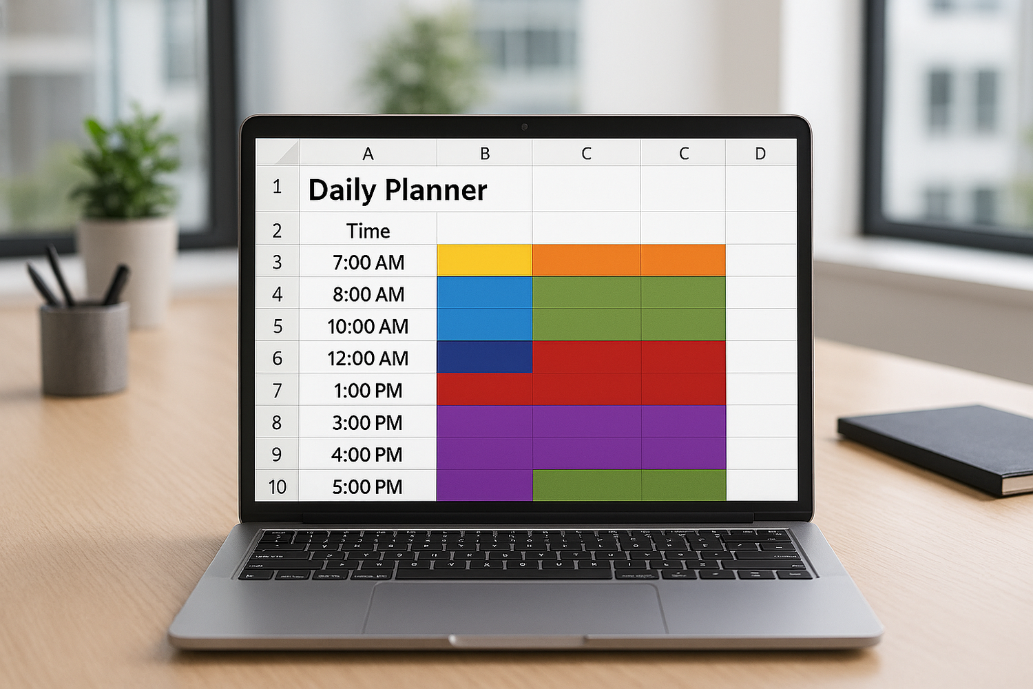 Tätigkeiten sollten nach Auswahl eine Farblogik zugeteilt werden ohne manuell die Farbe ändern zu müssen. Mit Hilfe einer von uns erstellten Farblogik, konnte der Aufwand der Farbmarkierung quasi um 100% reduziert werden, da die neue Exceldatei, das Markieren der Felder in der jeweiligen Farbe automatisch übernimmt.